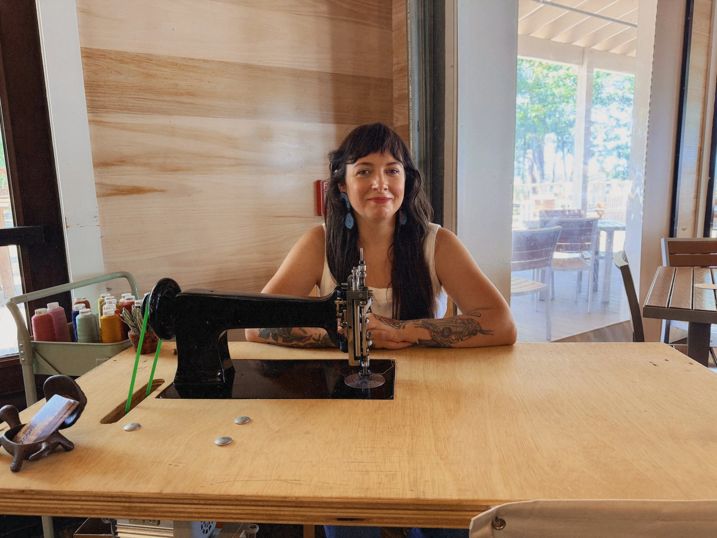 Paris creates out of her home studio in Historic Downtown Summerville. She also travels to offer live chain stitching at events and markets.