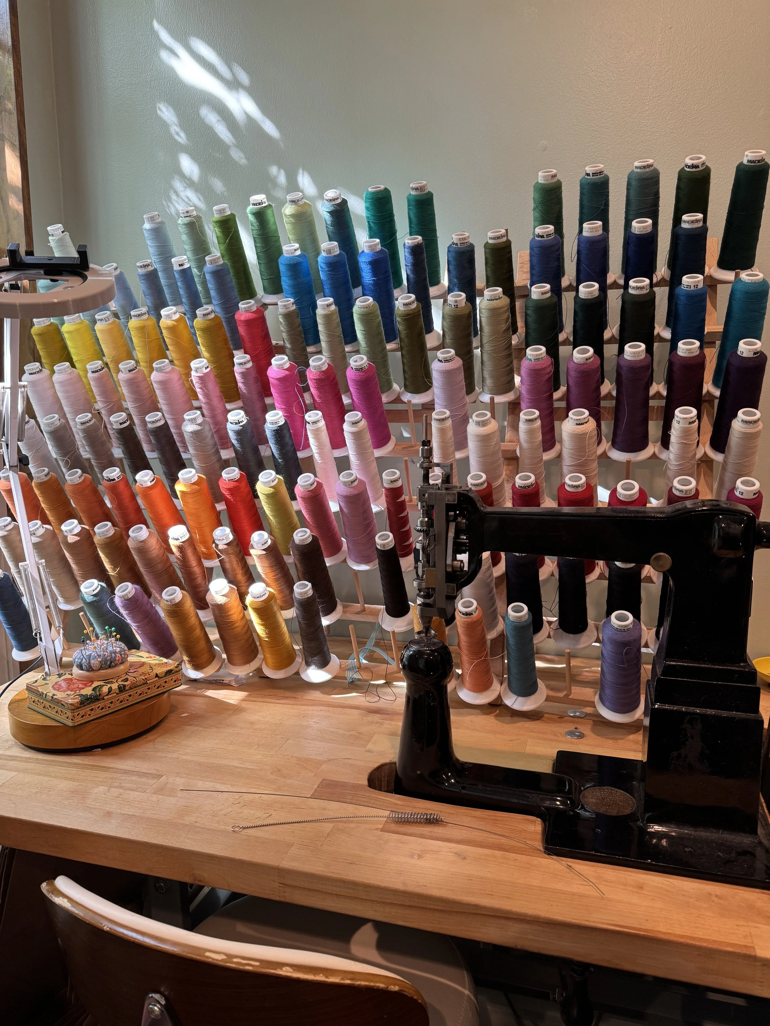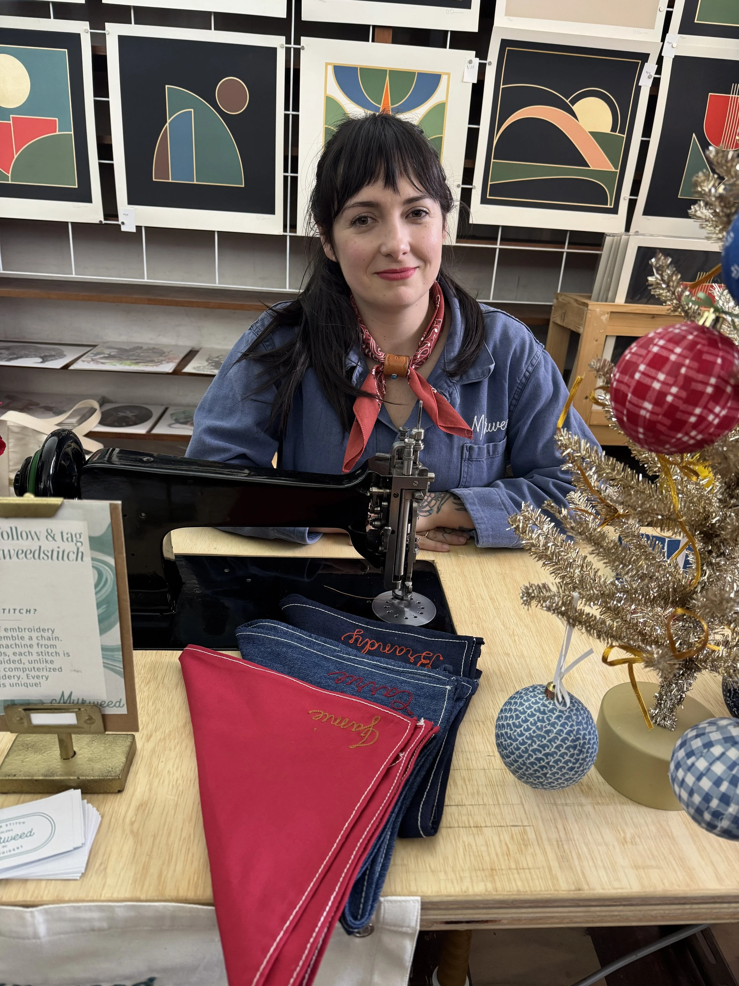Paris loves working with small businesses collaboratively for hats, patches, pennants, kitchenware and alike. Freehand cursive chain stitching especially on hats is always a fan favorite.